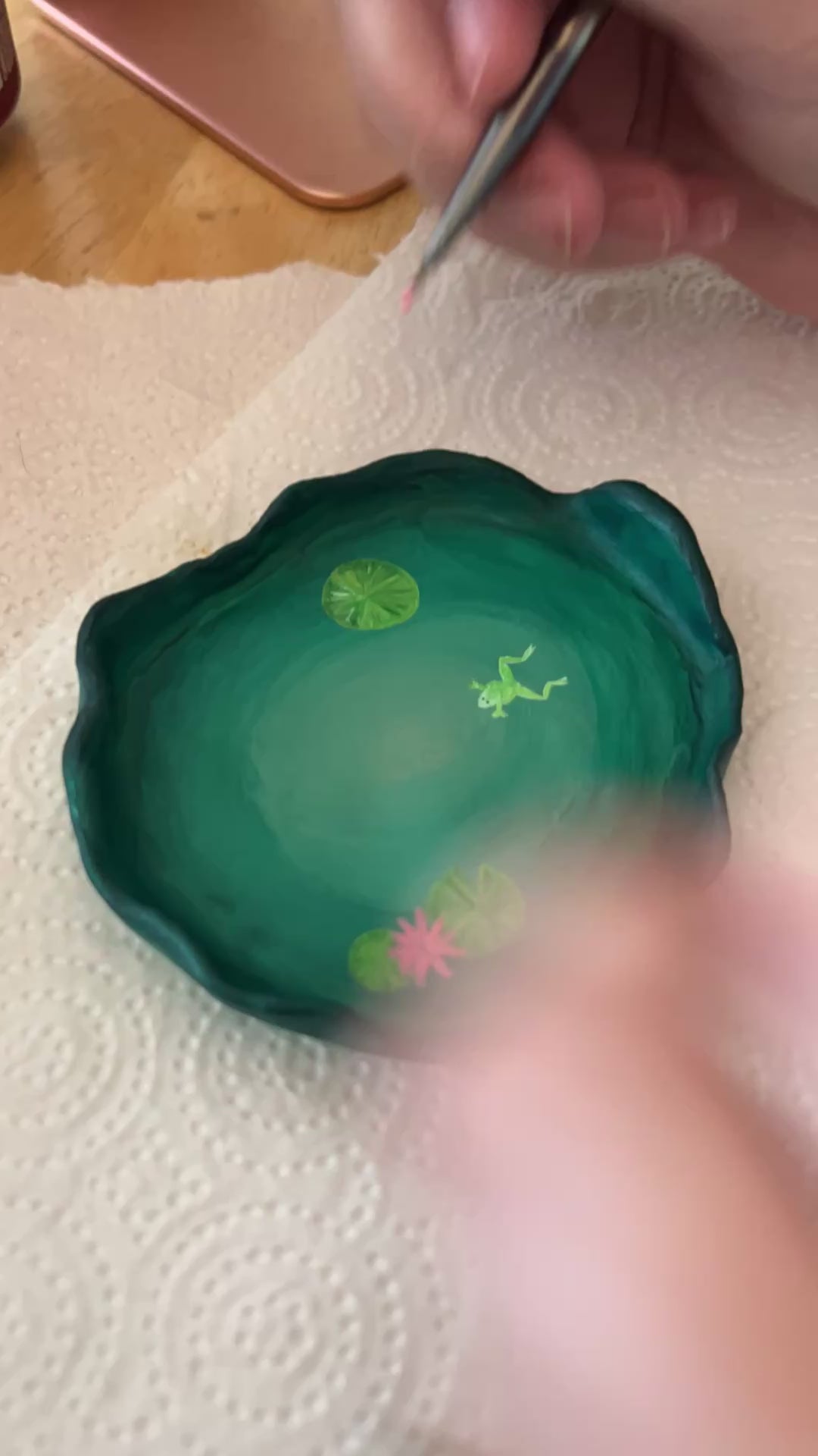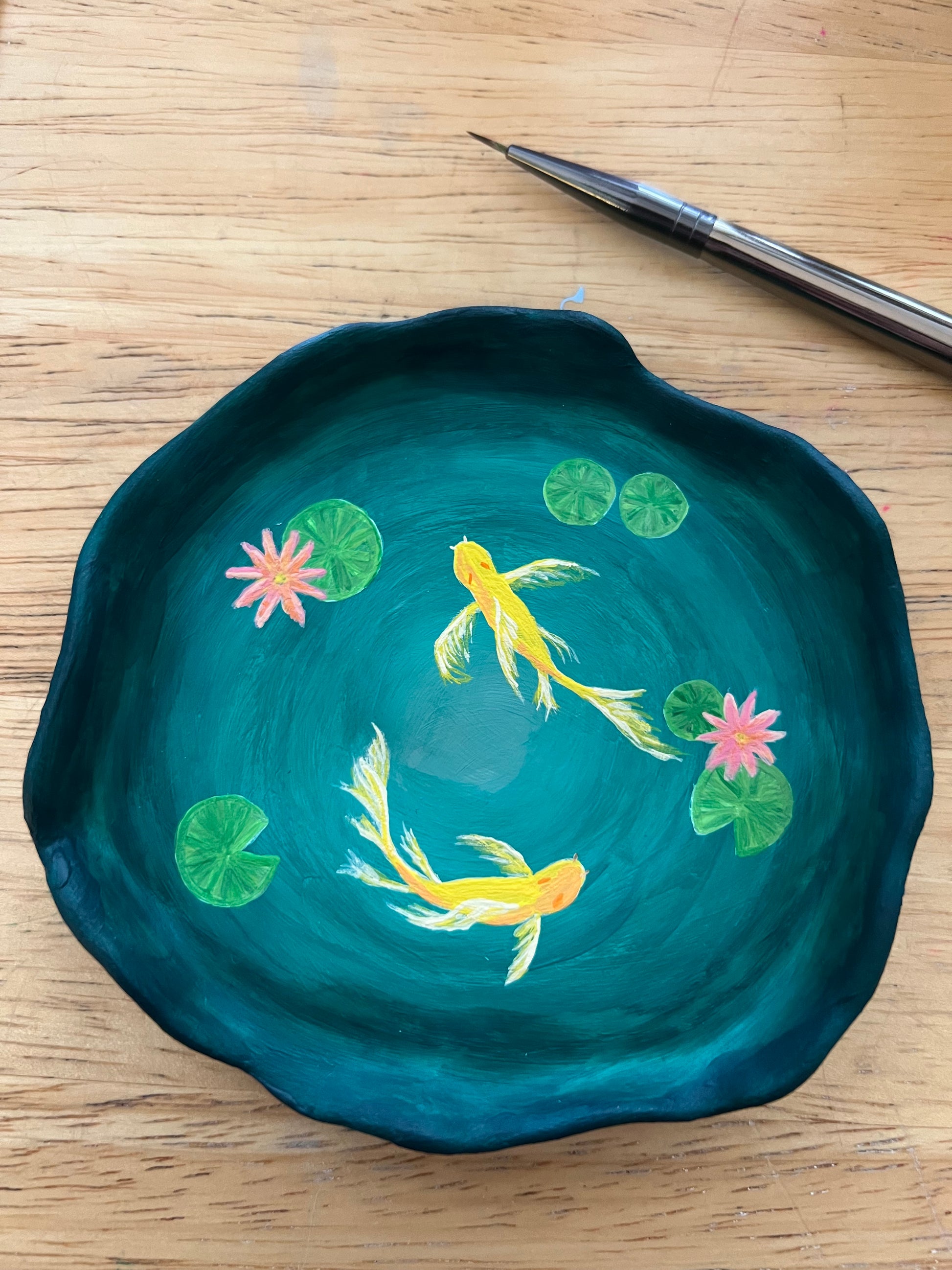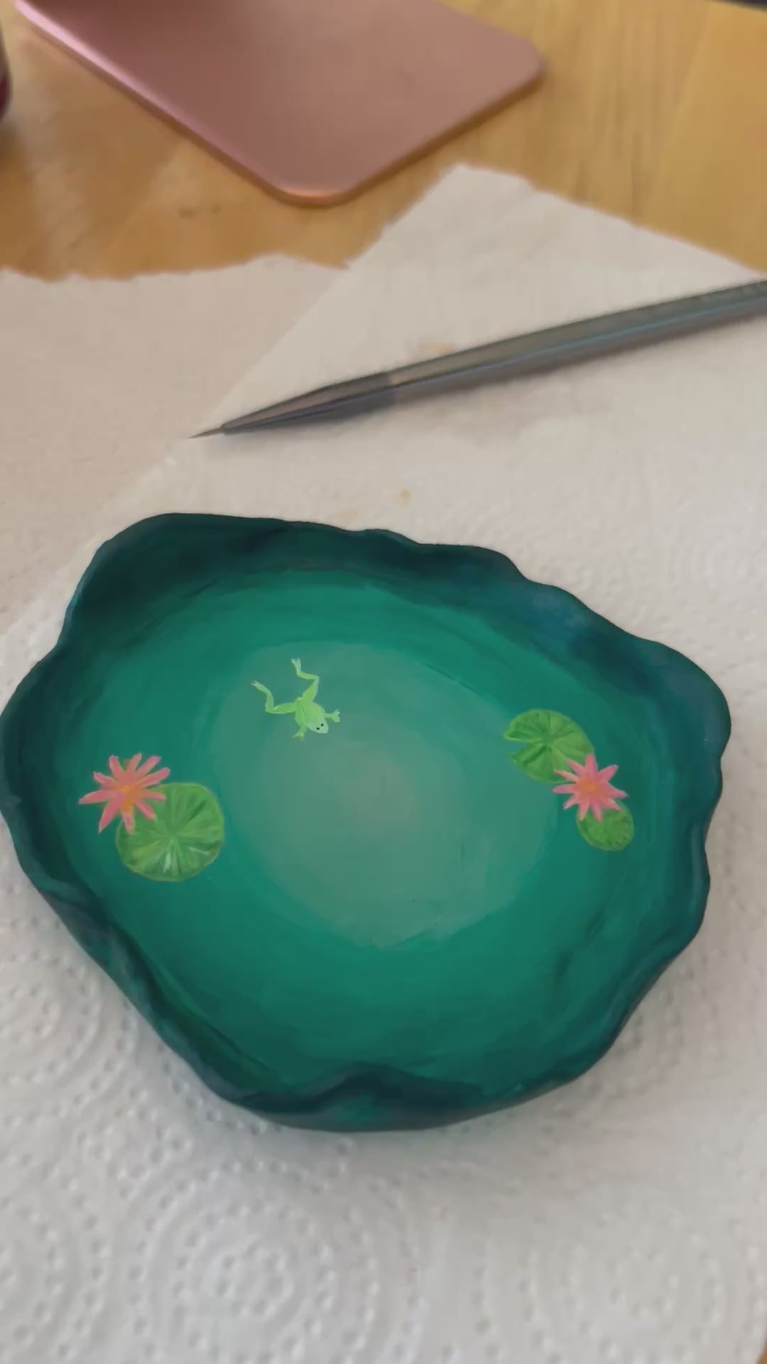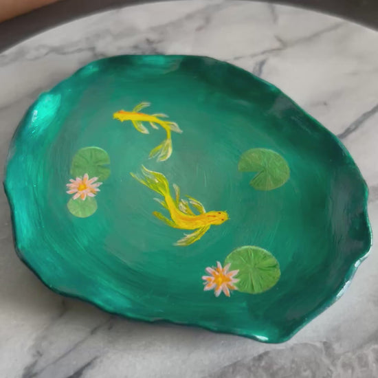 Bring a touch of nature’s serenity to your space with our handmade and hand-painted trinket dish, inspired by the tranquil beauty of a pond. Each dish features delicate lily pads and blooming water lilies, capturing the essence of a peaceful waterscape. Crafted with care, no two are exactly alike—every piece has its own unique brushstrokes and design variations, making yours truly one of a kind. Perfect for holding jewelry, keys, or small treasures, this charming dish is both a functional piece and a tiny work of art. Expect delightful variations that make your dish uniquely yours!